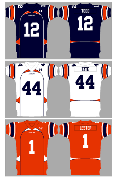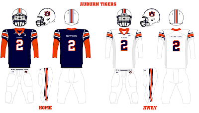 Many of these jerseys are pretty farfetched however I like many of the classic ones and even the current jerseys that they wear now. I would hope they don't choose to wear the Orange unis for the game but that would only follow along with the trend of current flamboyant kits. The bottom helmet design posted looks to me like a rip off of the helmets that Navy wore just this past weekend. I have not seen these worn by other teams however I do love the design. The issue with this though is that Nike had produced these and there would be no way that an Under Armor school in Auburn, would be able to use these.
