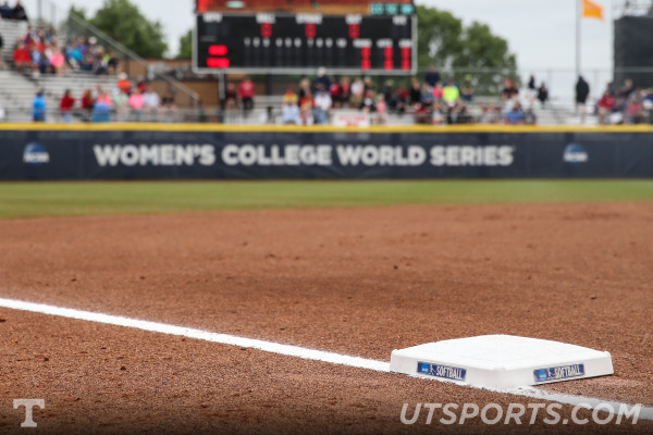 Tennessee came into the WCWS as the number eight seed, so they faced Florida in the opening game. For that game, Tennessee wore their orange tops with white panel inserts and script Tennessee, white pants with double orange striping that matches the football uniforms, and orange socks. In their second game, this time against Auburn, the Vols wore white tops with orange-white-orange stripes around the sleeves and collars, orange pants with white piping, and white socks.