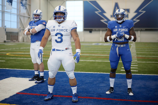 - Air Force – The Air Force Academy has updated to Nike’s newest Mach Speed template and looks fantastic. The team has struggled to find a great uniform identity over the last few seasons,but these are exactly how I’ve always imaged Air Force to look on the gridiron. It’ll be interesting to see what helmets of years past that the teams wears this season, or if they break out any new designs. Air Force is one of the very few teams I’ve always thought could perfectly pull off the grey uniforms, so it would be nice to see some grey return back to these uniforms.