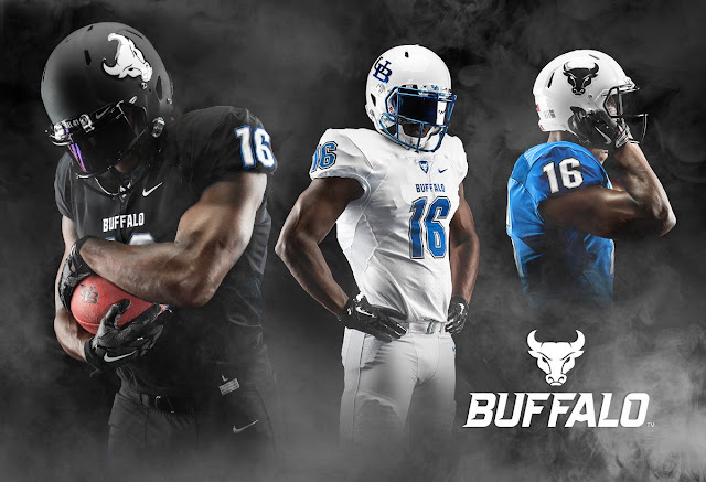 The Buffalo Bulls have new blue, white, and black uniforms this year. (image via Buffalo Athletics) |