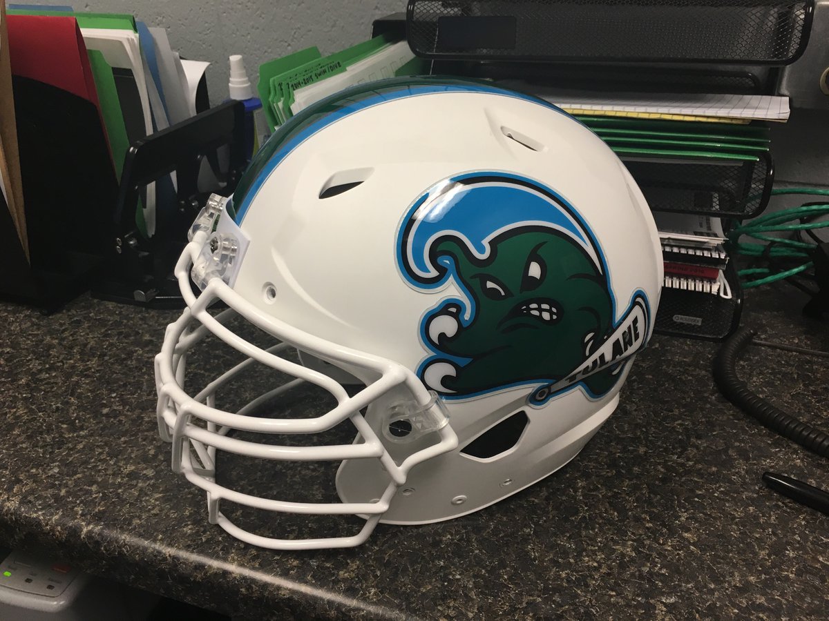 - After playing around with designs the last few years, Tulane has seemed to settle on one for now. After updating to Nike’s Mach Speed template with the newest jerseys, the Green Wave will be sporting green, blue,white, and grey uniforms. Each of the four jerseys feature a lovely set of shoulder stripes. The biggest attraction for Tulane is their new round table of helmets. There’s been many photos shown, but it’s difficult to know which are just prototypes and which will be worn. As long as we get a lot of Angry Wave, I’ll be perfectly content.