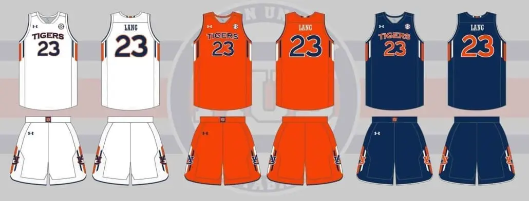Auburn debuted the 2015 tiger stripe alternates in a win against Missouri on January 10th. Unfortunately for the “Tigers” uniforms, the team fell to Georgia. The striped uniforms were worn the remainder of the season and through a magical run in the SEC Tournament, minus one game – the orange out game against Ole Miss. The biggest question for the “Tigers” set is if they’ll have a similar fate of being part of a new set that will be worn the remainder of the season. There hasn’t been any indication whether there is a blue – or even orange – set. If there truly are, they’ll more than likely look like this: