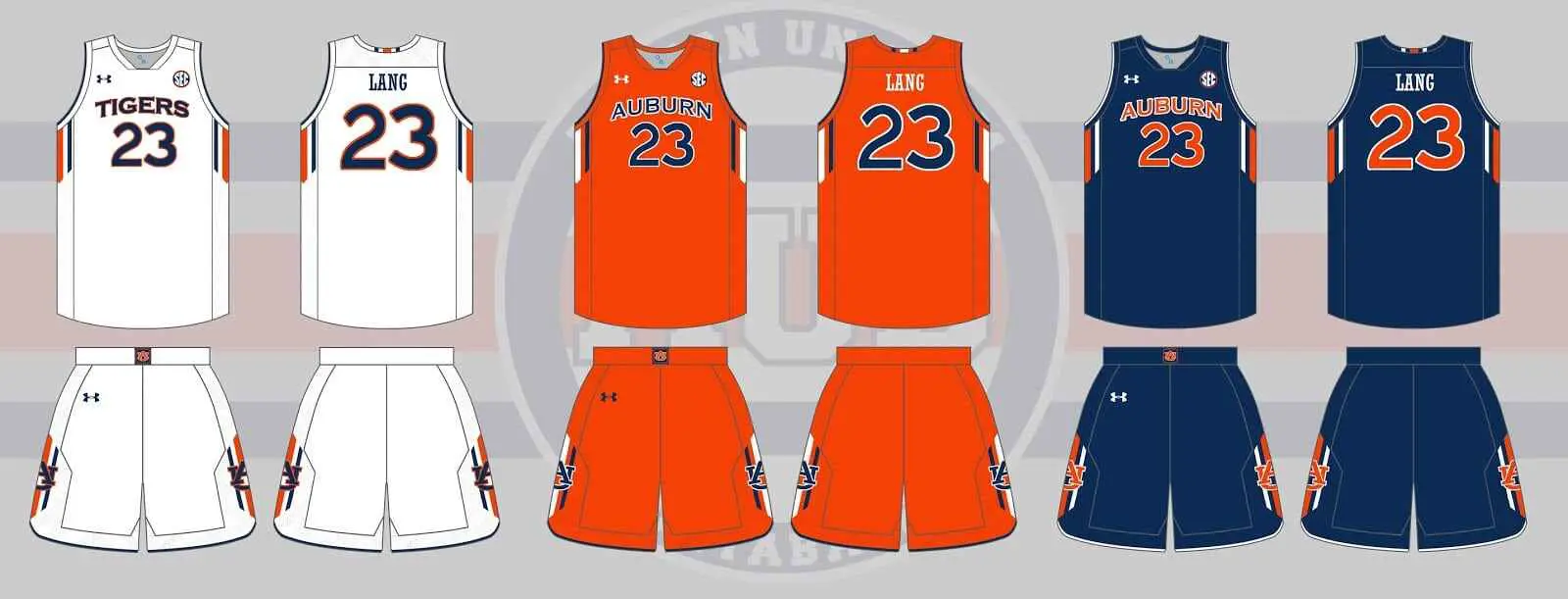 Auburn debuted the 2015 tiger stripe alternates in a win against Missouri on January 10th. Unfortunately for the “Tigers” uniforms, the team fell to Georgia. The striped uniforms were worn the remainder of the season and through a magical run in the SEC Tournament, minus one game – the orange out game against Ole Miss. The biggest question for the “Tigers” set is if they’ll have a similar fate of being part of a new set that will be worn the remainder of the season. There hasn’t been any indication whether there is a blue – or even orange – set. If there truly are, they’ll more than likely look like this: