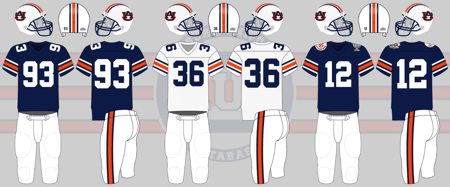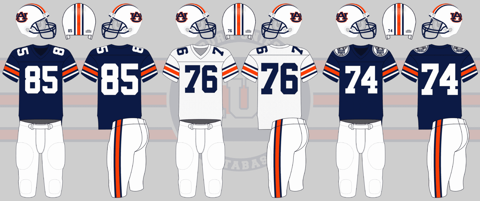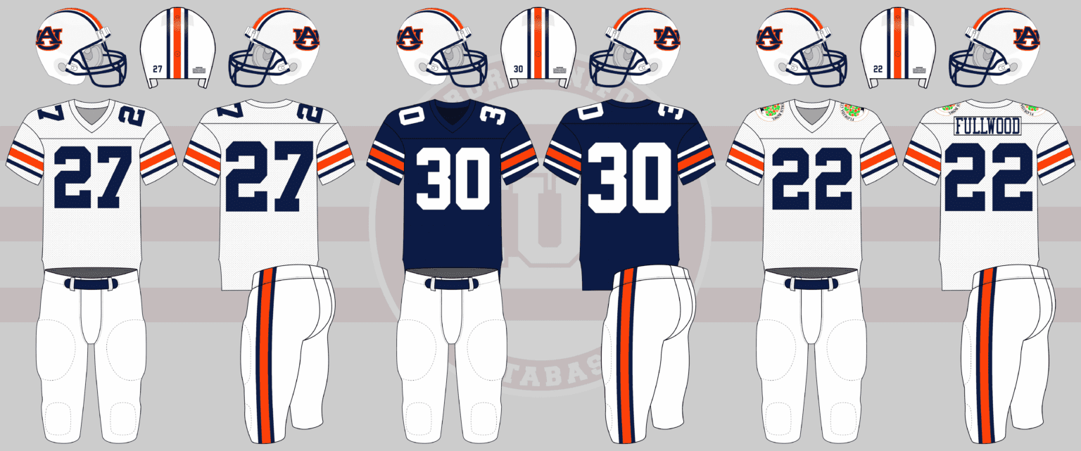 Aesthetically, Auburn continued to tweak the uniforms over the seasons, but stayed true to the traditional look. As Dye cemented his coaching philosophy, so did Auburn settle on uniform designs. Gone were the orange aspects of the Barfield era, in were large shoulder patches for bowl games.
