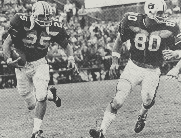 Auburn was one of the teams that did not wear the 100th-anniversary logo. Auburn had just added the AU logo to the helmets in 1966 and apparently wasn’t interested in changing. While many teams across the country wore the commemorative logo, the Tigers only faced one team with the 100 donning their helmets: Alabama.