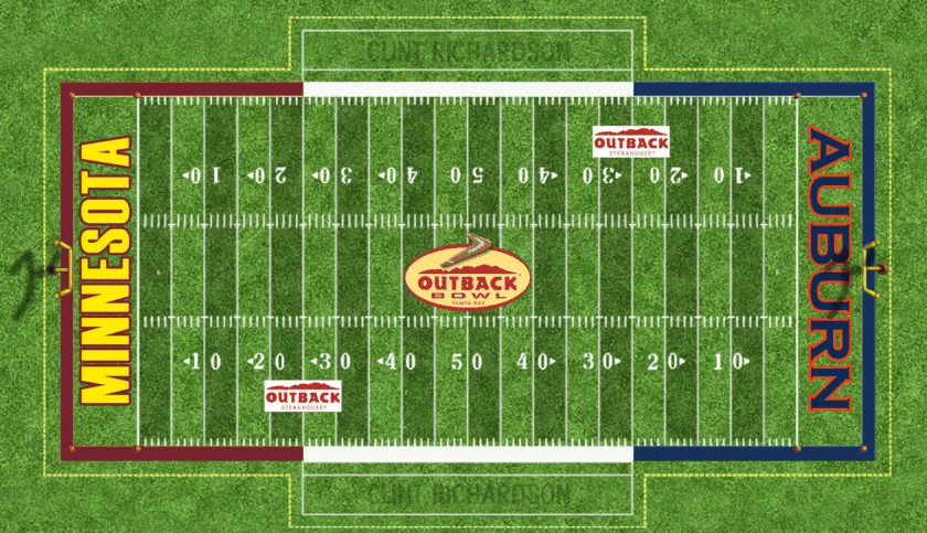 As the calendar changes over to the new decade, the Auburn Tigers and fans will be ringing in the New Year in Tampa at the Outback Bowl. The 34th edition of the bowl game will be Auburn’s fifth appearance. This will be the second straight year that Auburn has faced a first-time opponent in the bowl game – Purdue last year, Minnesota this time around.