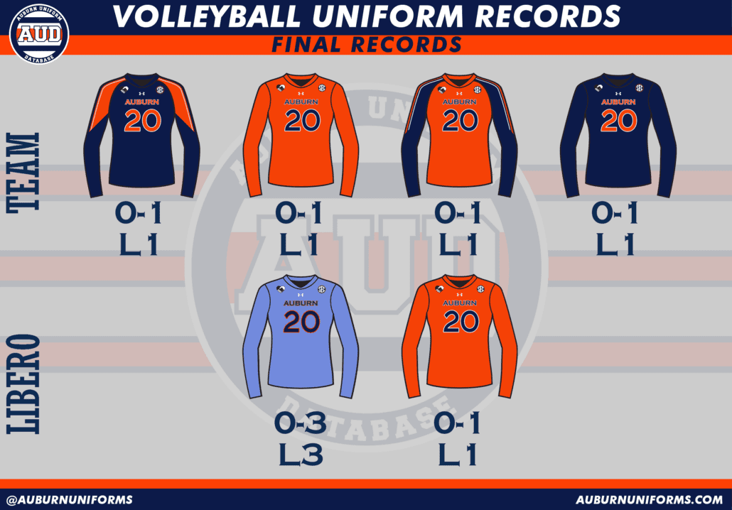The Auburn Volleyball team added a new set of jerseys last season that included contrasting colored shoulders and sleeves with Northwestern Stripes down the arms. They were sprinkled in during the year and returned this season for a few matches. As the team opted out of the spring portion of the schedule, we didn’t get to see if they were going to be treated as alternate designs again or be promoted to primary status.