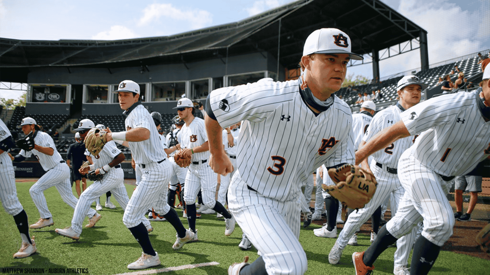 Auburn is wearing the new white batting helmets that they’ve been showcasing in promotional photos.