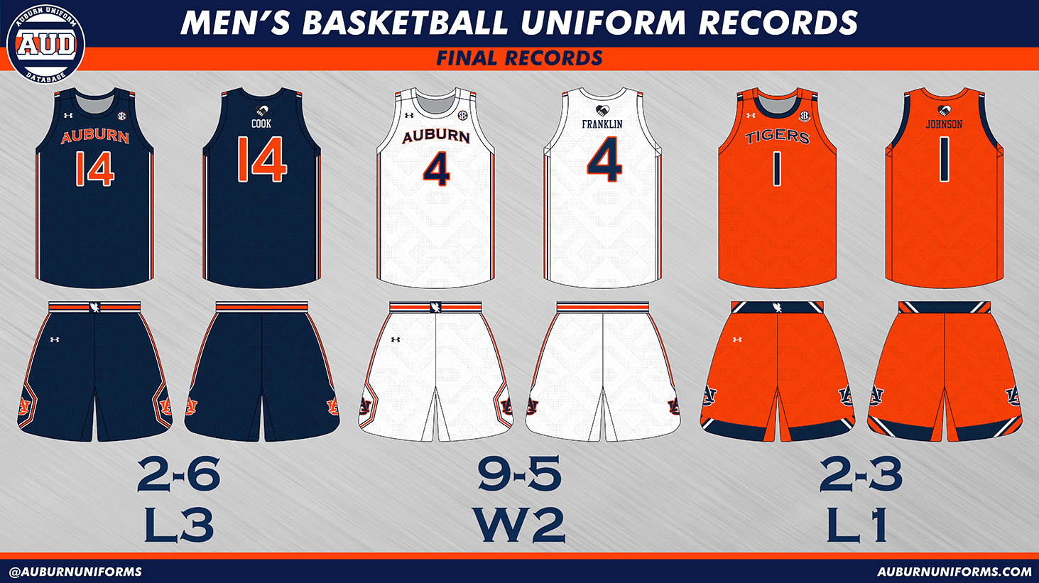 Auburn sported 14 different uniform combinations this season. Here’s how they fared: