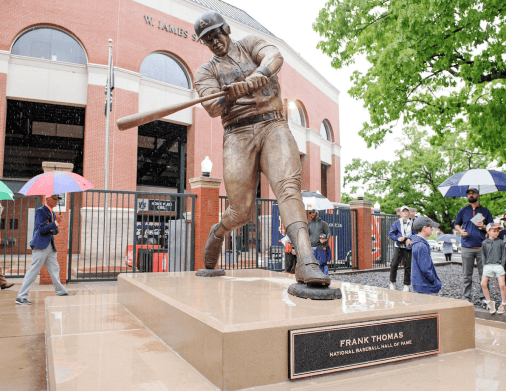 Celebrating the only Hall of Famer to have played in the Southeastern Conference, Auburn erected the new Frank Thomas statue just outside the north entrance of Plainsman Park. It’s the 8th athletics-related statue on campus, following the Heisman Trophy winners, Charles Barkley, and the men honored with their names on Jordan-Hare Stadium and Pat Dye Field.