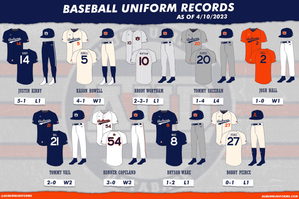 Enjoy learning about Auburn uniforms and history? Want to see more like this? Be sure to follow the Auburn Uniform Database on Facebook, Instagram, and Twitter for even more uniform news.  You can also purchase your favorite team’s merchandise through Fanatics or Dick’s Sporting Goods, with a portion of your sale going to support this website.