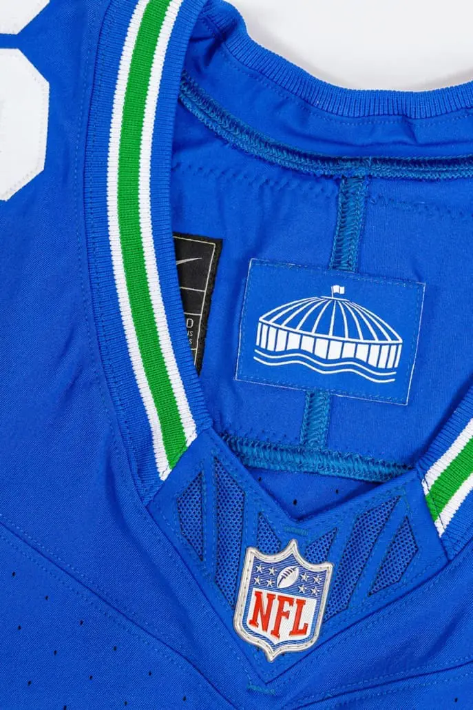 The Nike Vapor FUSE and its distinctive grill and v-shaped seam, as seen on the Seattle Seahawks throwback jersey. (image via Seattle Seahawks)