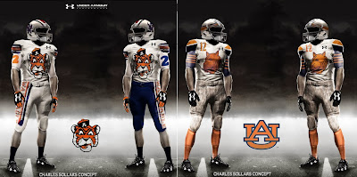 So, as a little summer project, I’ve put together some mock-ups of this new Homecoming Uniform Project. For sake of being realistic, all these uniforms are based on the new Under Armour template, with every detail remaining – conference and Under Armour patches, Auburn wordmark on the chest, nameplates, etc.