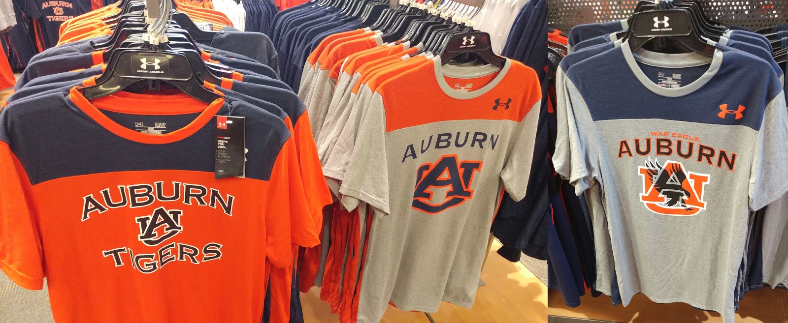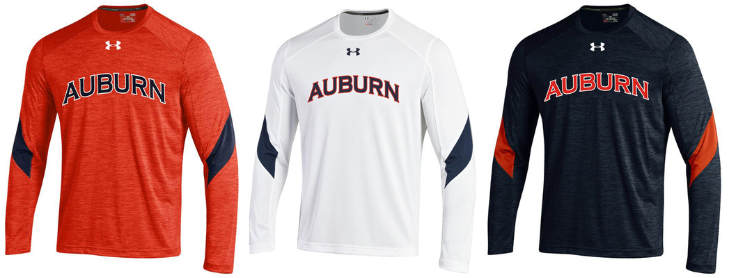If you don’t like the extra design aspects and want a simple shirt to showcase your fandom, these next ones are for you. Enjoy the Under Armour material with a simple AU logo large and in charge in the middle of the shirt, in either blue, orange, white, or grey. These will be priced at $31.99, so unless you just really like Under Armour, you can get this design much cheaper elsewhere.