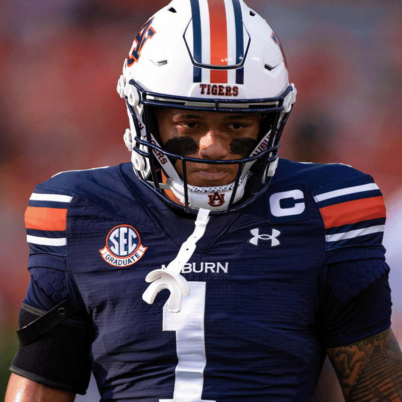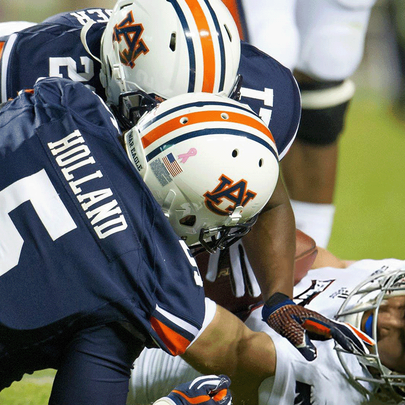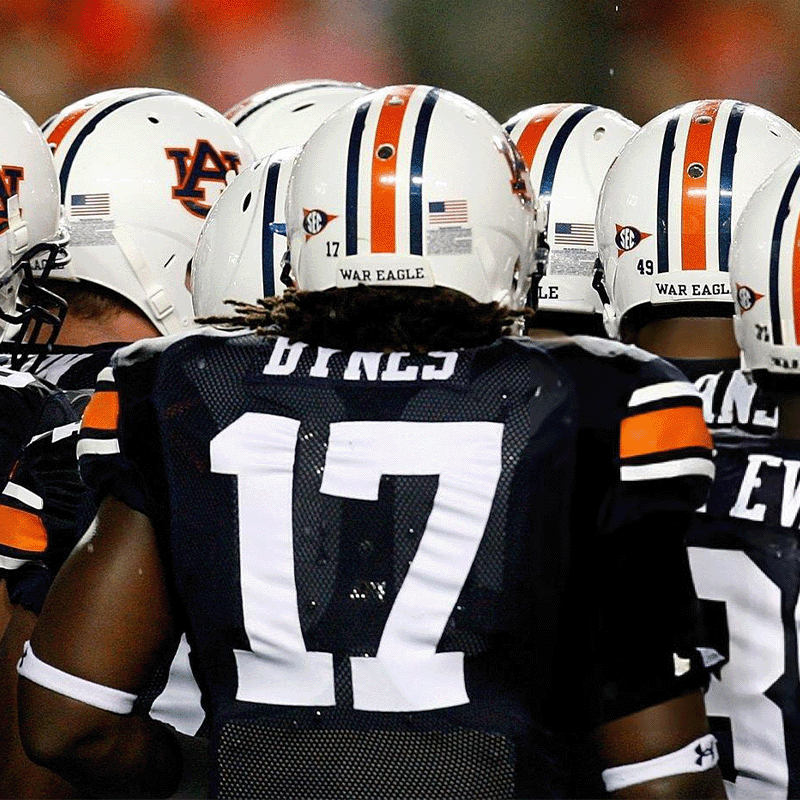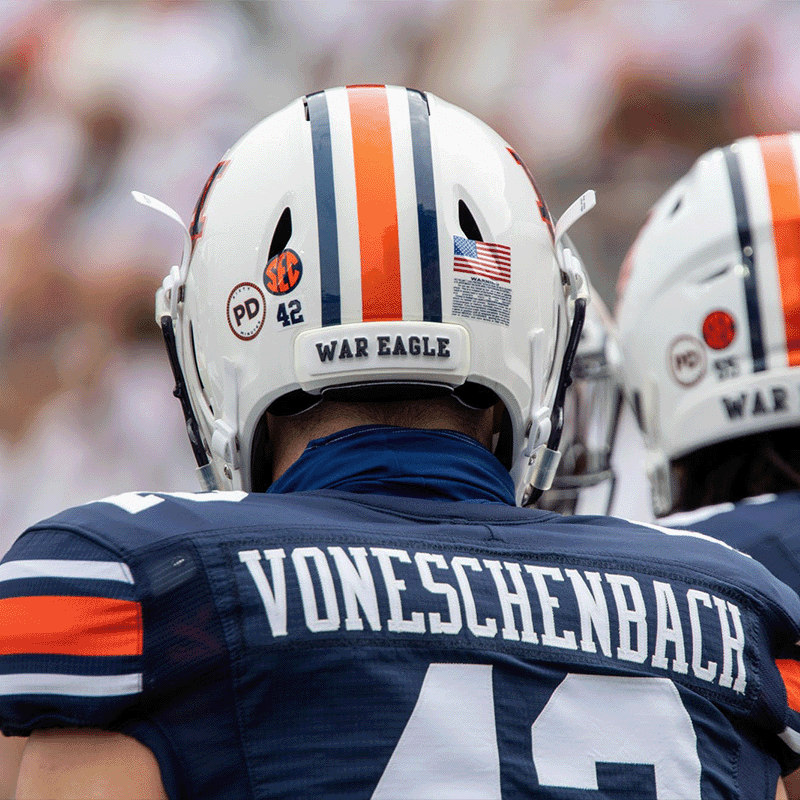 Auburn removed the AU logo on the left side of the helmet, replacing it with a navy and orange #7. No Auburn player had worn the number 7 since Sullivan last did in 1971. For one day, the entire roster would wear the retired number.