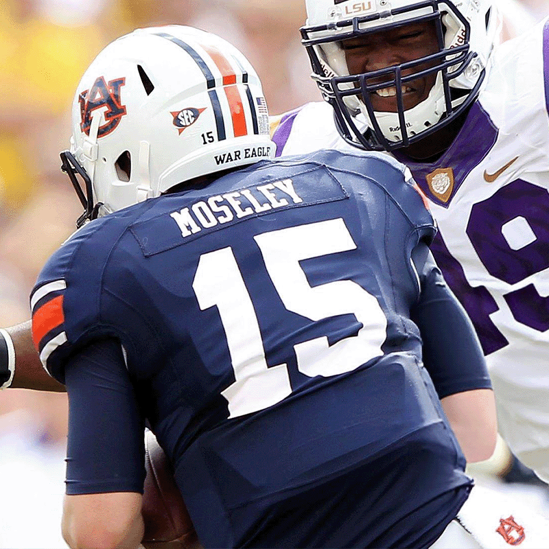 The Tigers went one step further and, much like 2007, replaced the navy facemasks with a grey one. Sullivan’s playing days came during the earlier era of facemasks being widely adopted throughout football. It wasn’t until 1974 that facemask manufacturers were able to effectively produce masks with a pigment. Auburn wouldn’t adopt a colored mask until Doug Barfield took the helm.