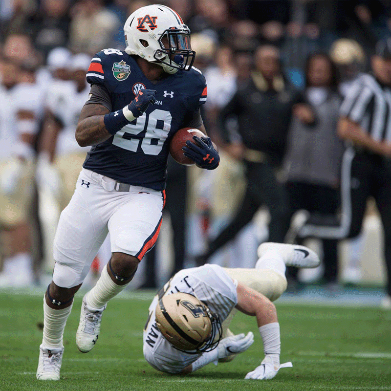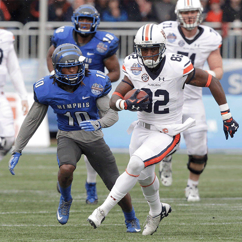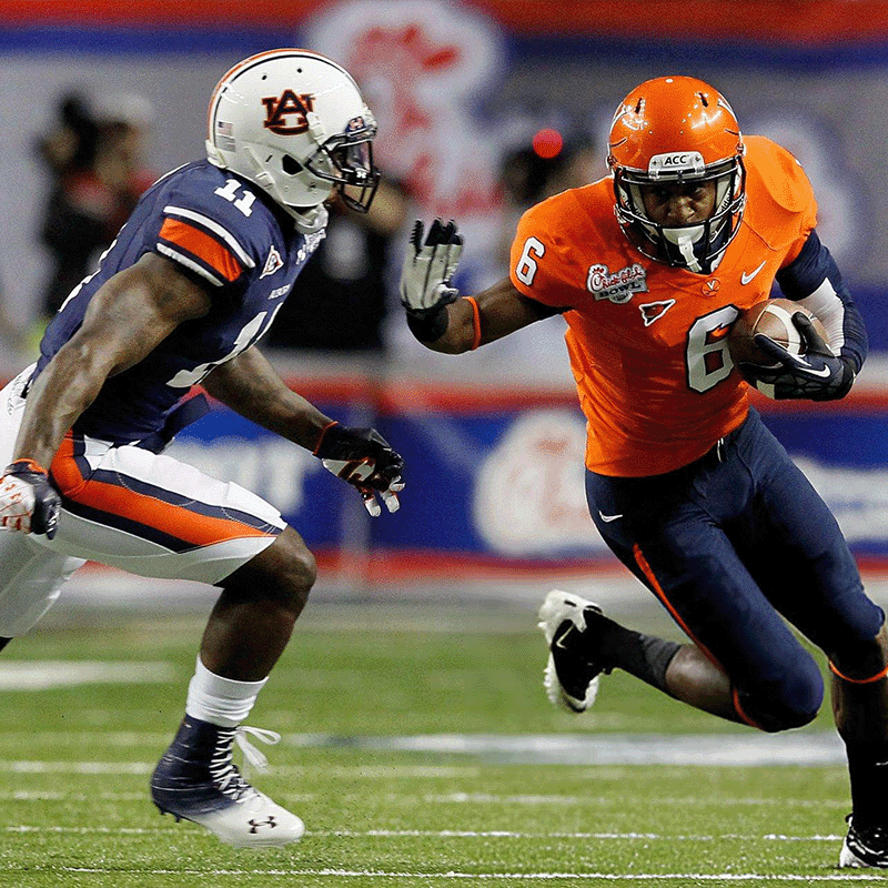 Auburn would struggle through much of the season to post a 7-5 record before being invited to the Chick-fil-A Bowl once again. The Tigers were matched up against Virginia for a game in which both teams wore their colored jerseys.
