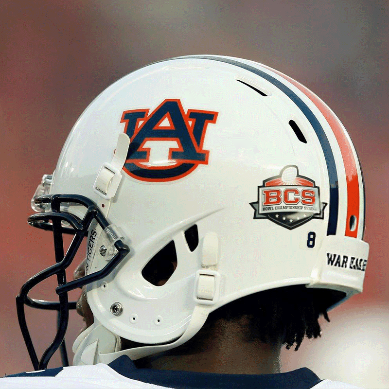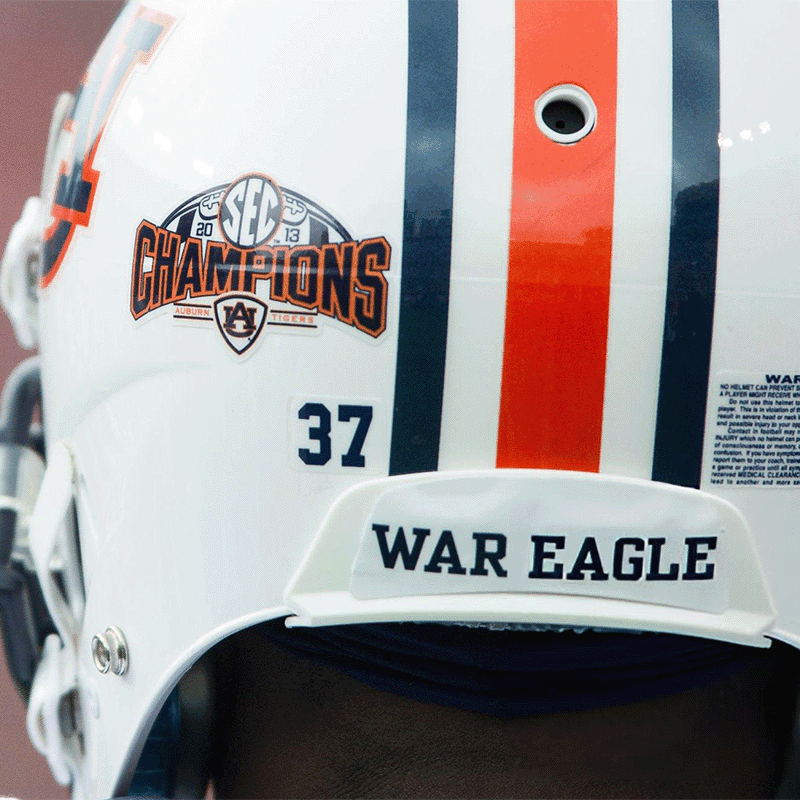 Each year since 2002, Auburn had worn a pennant-shaped decal on the back of the helmets. The design changed slightly over the years from an NCAA logo to the SEC and back to the NCAA. But Auburn finally joined their fellow conference members and adopted the circular SEC logo as a helmet decal. Unlike the three-colored jersey patches, the new SEC helmet decals featured orange letters over a navy circle.
