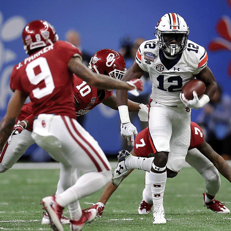 An up-and-down season and cards falling into place landed the Auburn Tigers in New Orleans, Louisiana, to face the Oklahoma Sooners for the first time since 1972. The Tigers wore white jerseys for the second straight bowl game. Auburn would once again place the bowl patch on the right shoulder above the conference patch following the previous year’s poor placement.