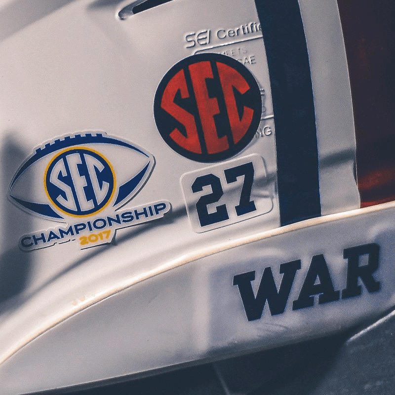 When Auburn and Georgia met for the second time during the season in Atlanta, both teams sported an additional decal on the helmets. It was the first time that the participating teams in the SEC Championship Game wore the game’s logo on their helmets. Auburn and Georgia would both wear the new decal on the left side of their helmets. For the Tigers, it fits well next to the new SEC decal.