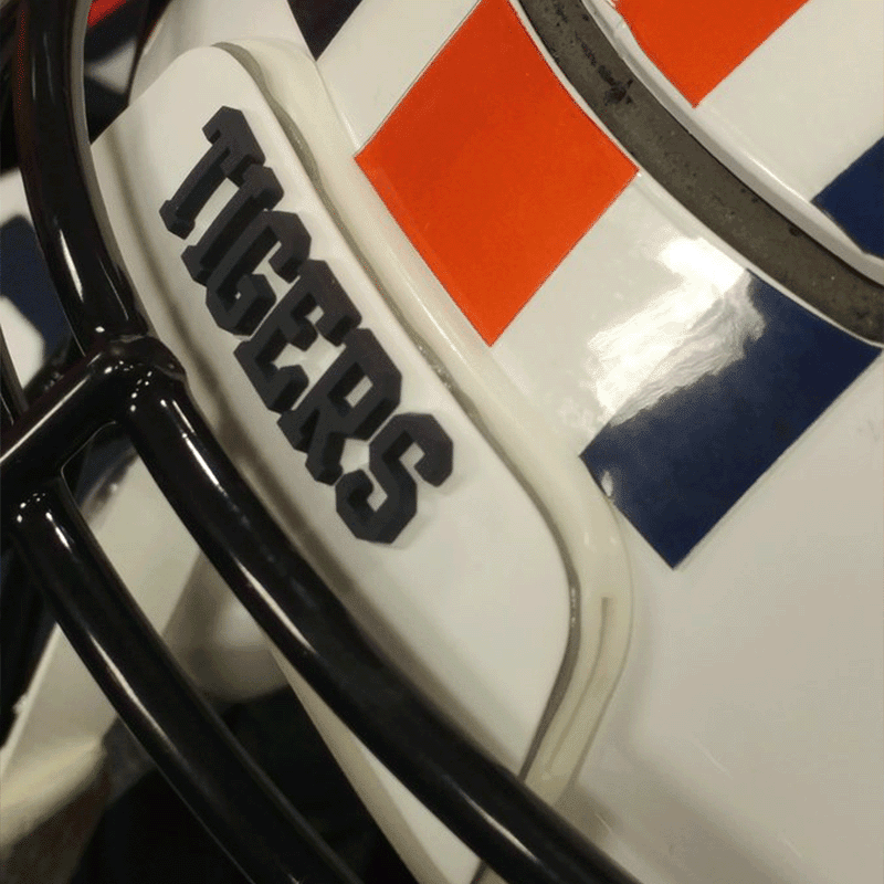 The bowl patch would once again be placed on the right shoulder, sticking with the recent trend. The Tigers would also make the tiniest of tweaks to the helmet, replacing the standard American flag decal with a chrome-finished one.