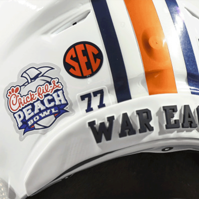 The Sugar Bowl patch is one of the larger patches worn during bowl season. Auburn added an equally large decal on the back of the helmet in place of the NCAA pennant logo.