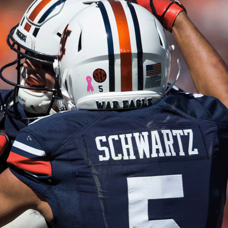 The one noteworthy item came during the October 13th matchup against Tennessee. Auburn donned pink ribbons in support of cancer prevention on the back of the helmets in correlation to Bruce Pearl’s AUTLIVE Cancer initiative. The Auburn University Marching Band even joined the celebration with pink capes and flags for a special AUTLIVE Cancer halftime show.