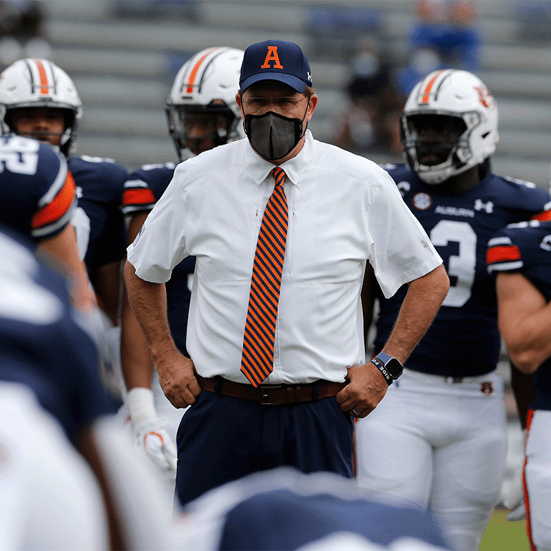 Head coach Gus Malzahn would join in the memorial and sport a button-down shirt and tie – a traditional Pat Dye sideline look – for the season-opening game against Kentucky. Malzahn would sport an old-school block-A logo cap for most of the season in honor of Dye as well. The ballcap would be traded in for a visor in the season finale, Malzahn’s last as head coach.