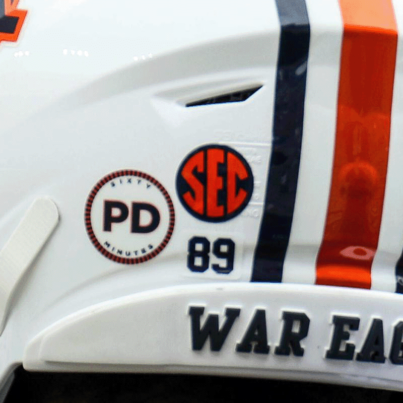 The Auburn community was dealt another blow when, on June 1st, former head coach and athletic director Pat Dye passed away. To honor the Auburn legend, the Tigers wore a memorial PD decal on the helmets with a similar design placed on the field. The circular design featured “Sixty Minutes” around the top and bottom with sixty orange and blue stripes around the exterior. Both were meant to represent the famous quote Dye had during his introductory press conference when hired as head coach in 1981.