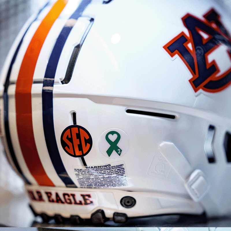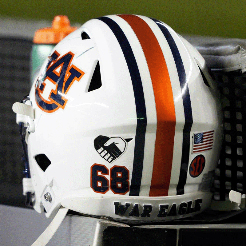 The Tigers would also add two temporary decals to the back of the helmet. Auburn would sport the Hilinski’s Hope Foundation decal for the LSU and Georgia games. The green ribbon includes a 3 on the tail in honor of Tyler Hilinski. Tyler played quarterback at Washington State. He committed suicide in 2018 after his junior year, shocking the Washington State and college football communities. The Foundation works to support mental health among student-athletes.