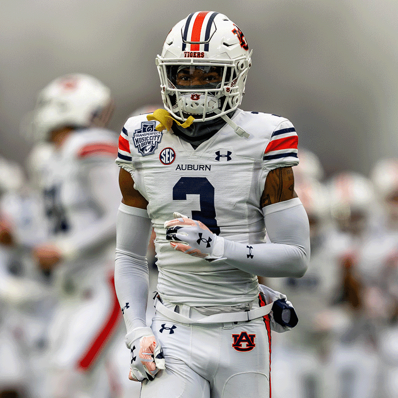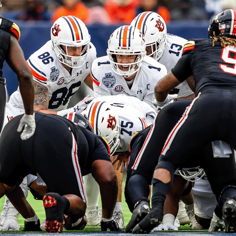 Auburn would face Maryland in the Music City Bowl in Nashville to conclude the season. The alternate facemask colors would make their postseason debut as the Tigers wore the white cages. The Music City Bowl patch would sit on the right shoulder above the SEC patch just as it had done a few years prior.
