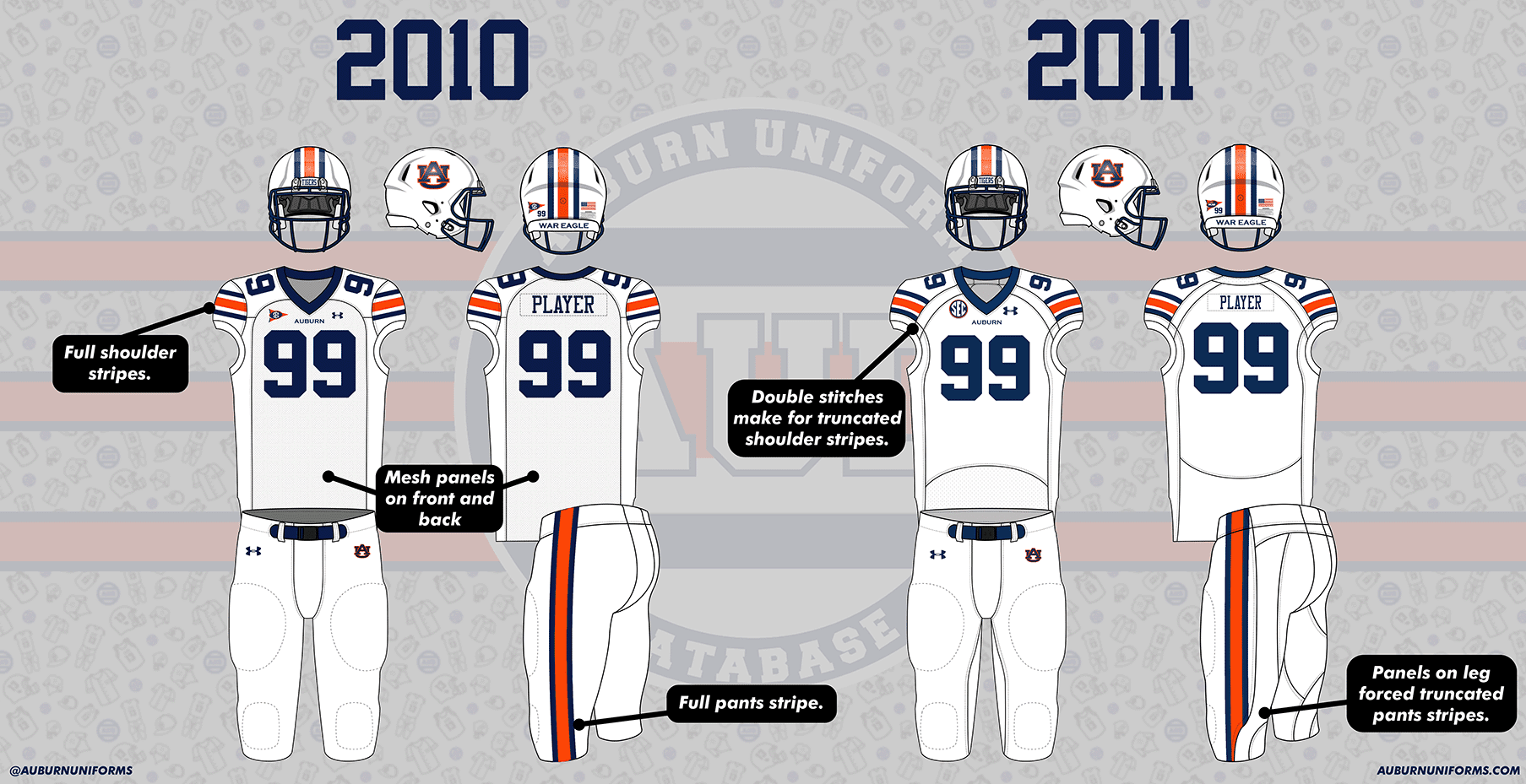 The final season of Auburn wearing Under Armour uniforms brought a new template. This new chassis was drastically different than the previous designs in build. Of course, Auburn’s uniform design remained untouched.