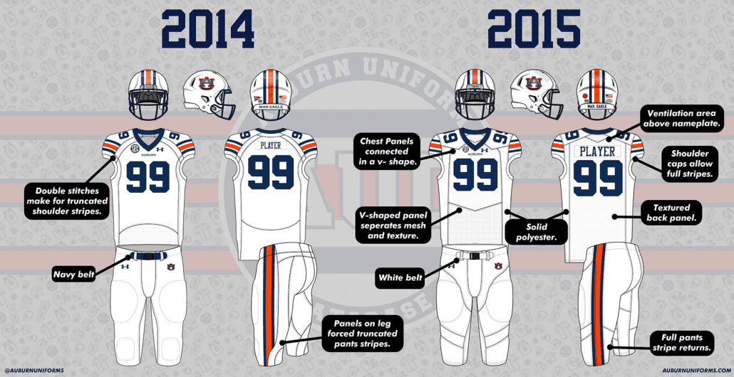 The 2016 season saw one major change for the Auburn football uniforms – and all SEC uniforms, for that.