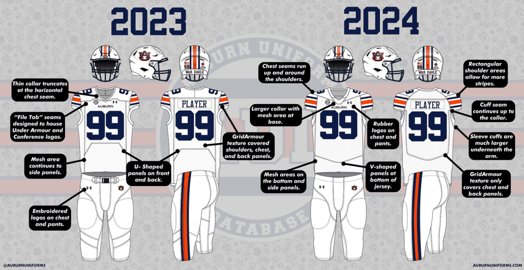 Most of Auburn’s uniforms changed mightily across the board. Even though the overall design of the traditional football uniforms stayed the same, there were plenty of details that changed with the transition.